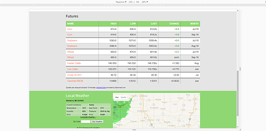 This was a custom theme in WordPress, and it allowed me to get my feet wet. There is also an API call to return the futures numbers, as well as a call that returns the weather information & reformats it.