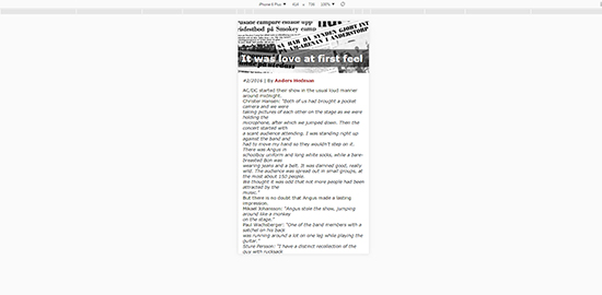 This is a site I was asked to help with. It is the online presence of a printed fanzine for the band AC/DC. It shows the issues of the fanzine, along with the articles for each. Users can sign up and order individual issues or subscriptions, as well as gain access to member only online content.